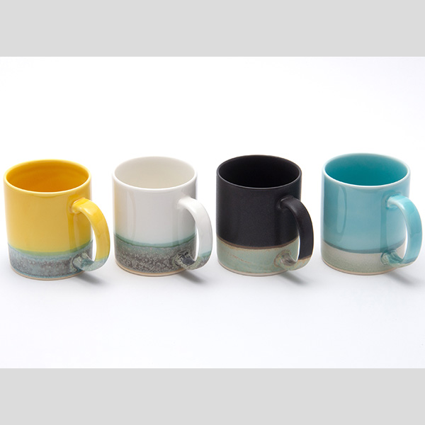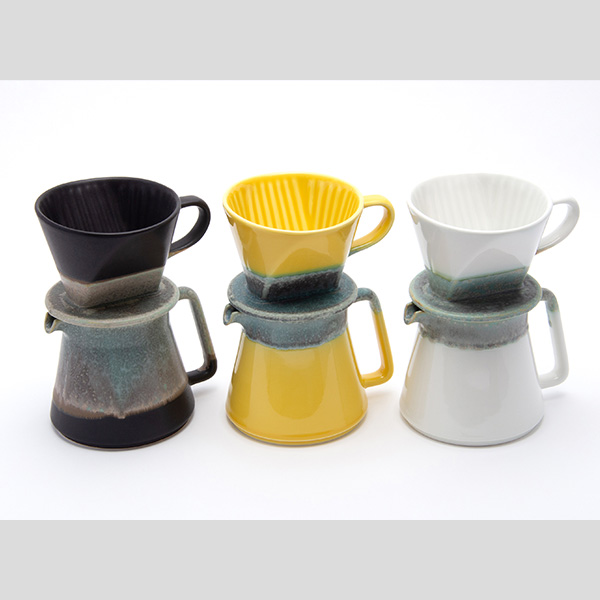 クルムではまだ高価な美術品のお取り扱いが難しいため、日常にお使いいただける作品の中から、陶磁器らしい重厚な存在感がありつつも親しみやすさのあるフォルムと、ぱっと目を引くバイカラーの色合いが特徴のハンドドリップセットやラージマグを、日本のみなさまにご紹介することにしました。