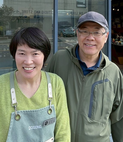 妻のチョン・ギョスクさんは、快活で、韓国ドラマに出てくるような情に厚い女性です。ショップに行くといつも大歓迎してくださり、まさに「オンニ」(家族のように親しい年上の女性に対して愛情を込めて呼びかける「お姉さん」という意味の言葉です)のような存在です。
