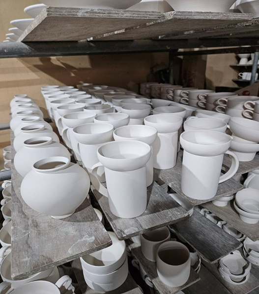 また、陶磁器は焼成するときに収縮するため、その過程でゆがみや変形が生じます。これを防ぐために、底の部分を厚くすることが多いのですが、それが重さの原因にもなります。ソ・ジョンソン作家は、底の部分もできる限り薄く削ることで、比類のない軽さを実現したそうです。